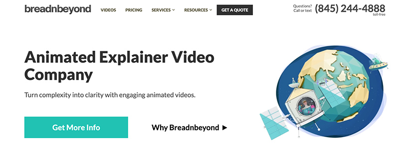 | Breadnbeyond | Has been producing animated explainer videos since 2009, spanning various industries, including startups, education, healthcare, crypto, AI, and more. | 2D and 3D animated explainer video | 5.0 (Clutch) |