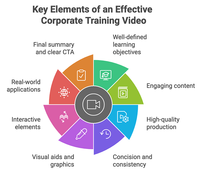 Do you wonder what makes the above videos engaging and inspiring? Corporate training videos need to involve several key elements to ensure they capture the audience’s attention and facilitate effective learning. Let’s explore some factors that contribute to the effectiveness of these videos: