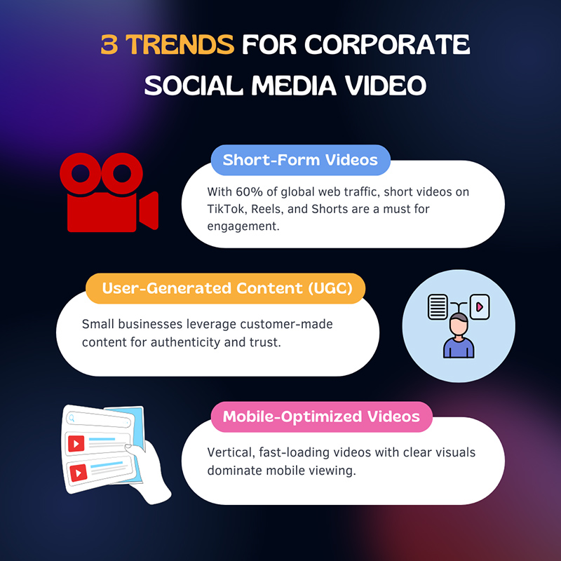 Before you even start Googling “corporate video production companies near me,” or thinking about budgets, you need to understand the landscape. What kinds of videos are grabbing attention and driving results right now? Because in the world of digital marketing, trends shift faster than your algorithm feed.
