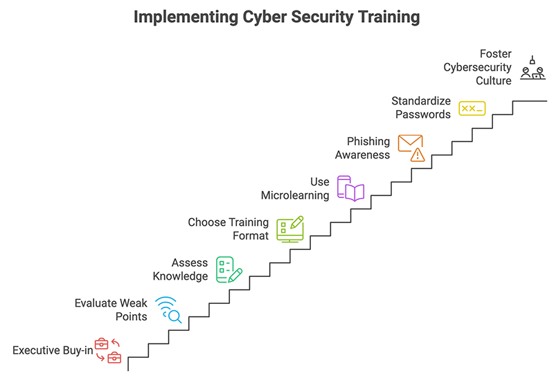 The following steps outline key practices to help you create a strong cybersecurity program. These steps ensure that training is relevant, ongoing, and targeted to address the specific risks your business faces.