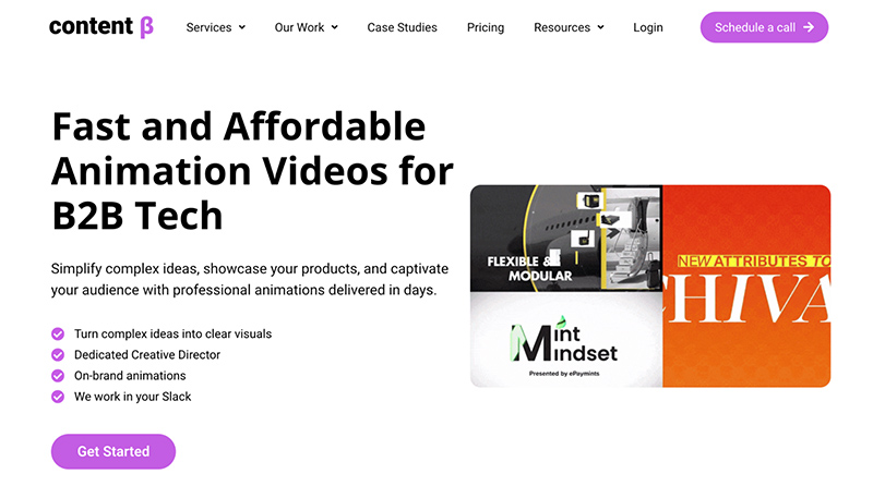 | 2. Content Beta | Offers on-demand video and design services specializing in explainer videos for B2B brands, emphasizing quality, speed, and cost-effectiveness. | Explainer videos, finance marketing videos, finance animation, remote video production, testimonial videos (B2B software & tech focus). |