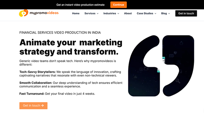 | 9. Mypromovideos | An award-winning video production agency collaborating with various clients, including fintech companies. | Company overview video, product explainer video, demo video, case study video |