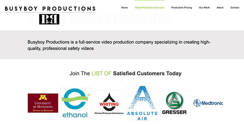 | BusyBoy Production | Full-service video production company known for creativity across styles and industries, focusing on producing visually compelling content tailored to client needs. | New employee safety videos, construction safety videos, industrial safety videos, contractor orientation safety videos, warehouse safety videos |