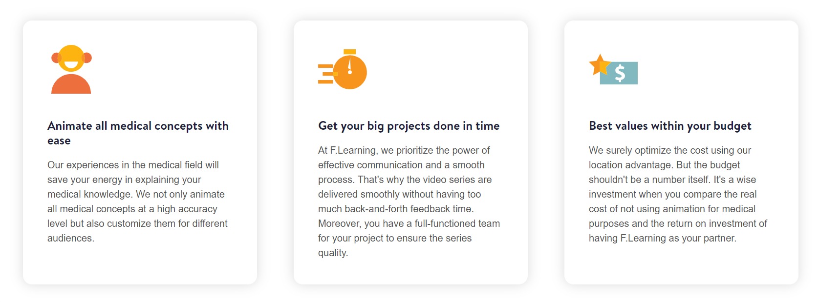 When considering the top healthcare animation studios, New York is home to several industry leaders. However, it’s important to recognize that high-quality animation is not limited to one geographical area. Studios like F. Learning Studio, based in Vietnam boast the same extensive experience.