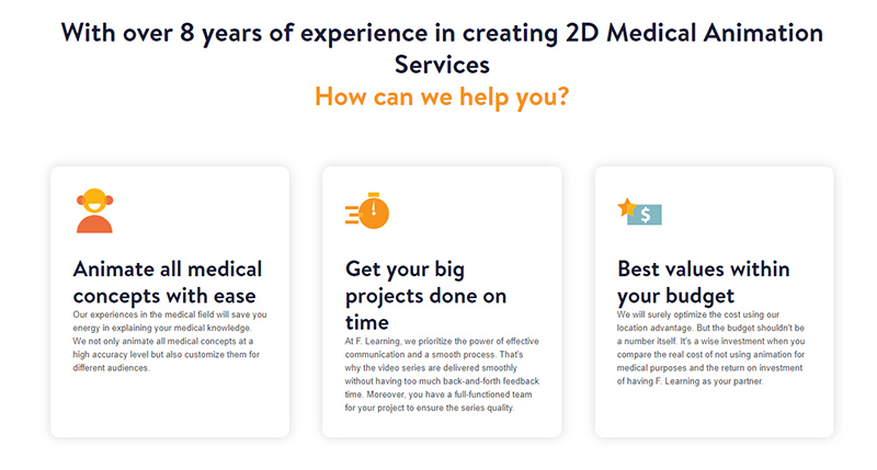 At F.Learning Studio, we recognize the complexities of communicating healthcare messages effectively. We collaborate closely with healthcare providers, pharmaceutical companies, and medical institutions to tailor animations that meet specific marketing objectives. By breaking down intricate medical concepts into visually appealing and easy-to-understand content, we ensure your videos resonate with diverse audiences, from healthcare professionals to patients.