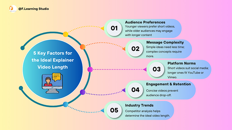 So, how do you figure out the perfect length for your explainer video? It’s not just guesswork. Let’s break down the 5 key factors that should guide your decision-making process and ensure you hit that sweet spot for viewer engagement.