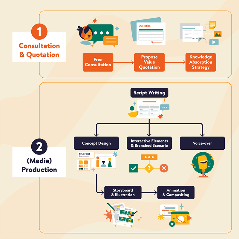 At F.Learning Studio, your explainer video journey begins with a free consultation from our seasoned advisors. We invest time upfront to grasp your goals and audience, ensuring your video strategy is perfectly aligned for maximum impact.