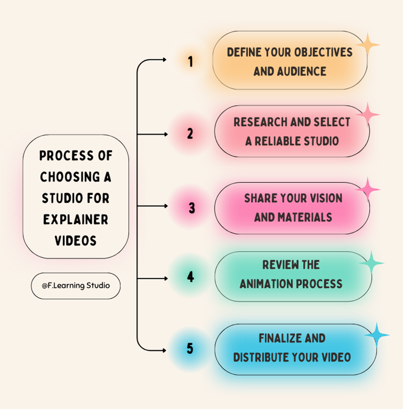Your time is your most precious resource, and at F.Learning Studio, we treat it as such. We’ve meticulously crafted our explainer video animation process to be a well-oiled machine, prioritizing efficiency and transparency every step of the way. Forget the headaches and time drains often associated with video production. We’re here to deliver a stunning final product and a refreshingly smooth experience. Here’s how we make it happen: