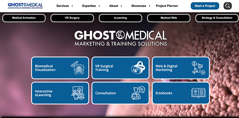 | 7. Ghost Productions | Minneapolis-based company delivering custom medical animations and marketing content for healthcare professionals. | Medical animation, VR surgery, medical illustration, social media campaigns, eLearning content. |