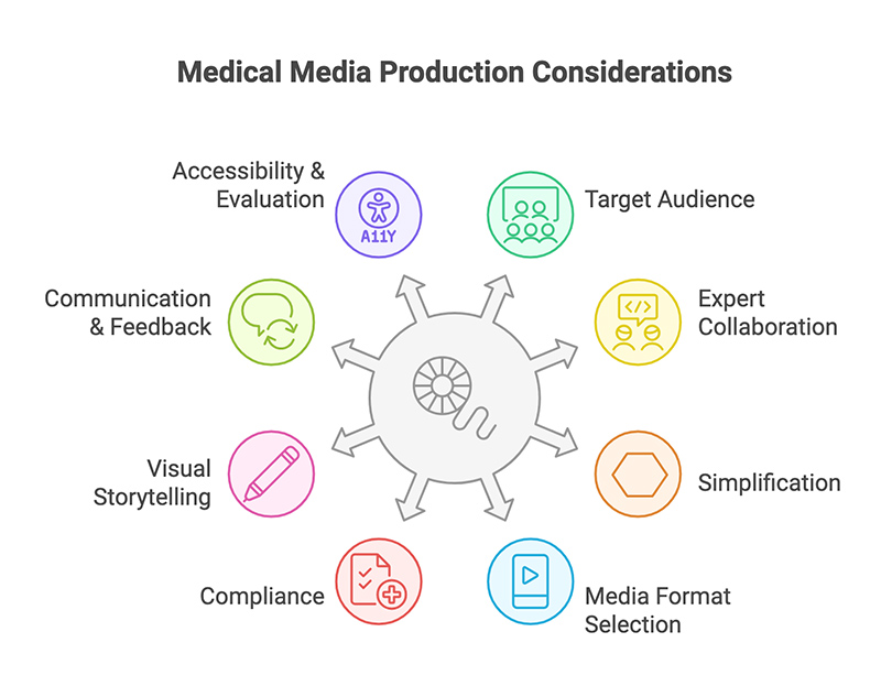 Producing effective medical media requires precision, clarity, and strategic planning. Here are 8 key considerations to ensure your medical media project is both engaging and accurate, from understanding your audience to ensuring compliance with medical standards:
