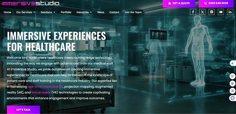 Immersive Studio is a cutting-edge production company based in the UK, specializing in creating immersive experiences for the healthcare sector. By leveraging advanced technologies such as virtual reality (VR), augmented reality (AR), and interactive 3D environments, Immersive Studio aims to transform patient care and staff training through innovative visual storytelling.