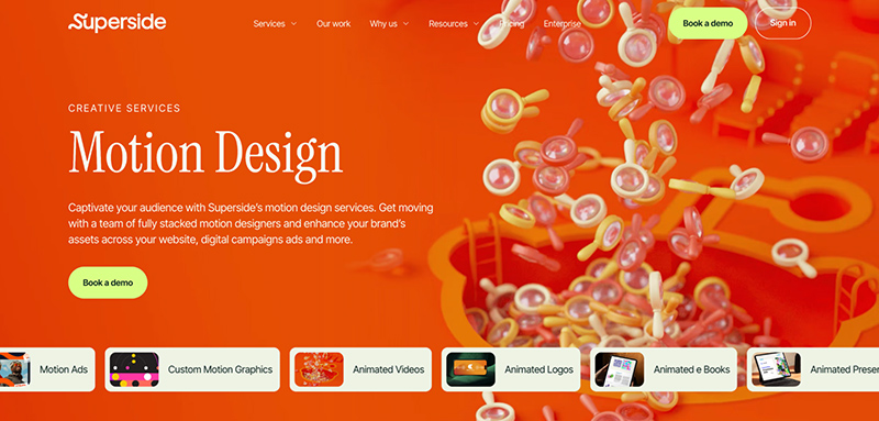 | Superside | Motion ads, Custom motion graphics, Animated videos, Presentations | Technology, SaaS, Consumer goods, Financial services, E-commerce, IT & Internet |