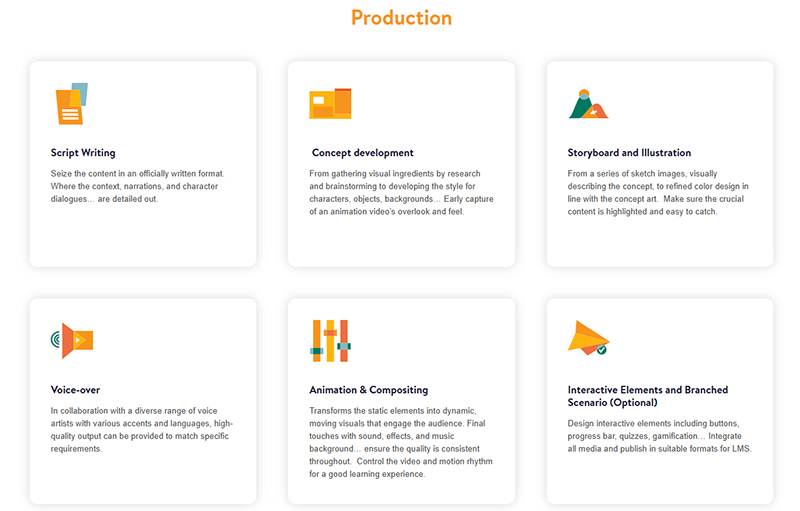 Keep your employees engaged with highly interactive and visually captivating content. Our animated videos are designed to hold attention, increase participation, and improve information retention. F.Learning Studio provides a wide range of services, including: