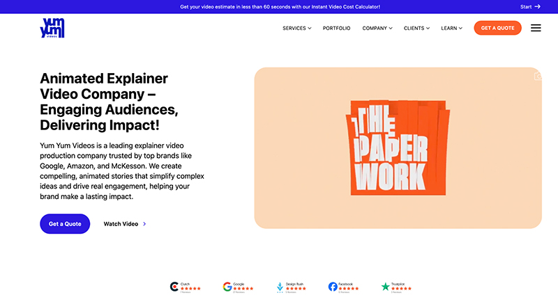 Testimonials: Yum Yum Videos has collaborated with notable clients in the healthcare sector, including McKesson and Thermo Fisher. They are recognized for the high quality of work delivered, which has helped clients achieve significant business goals, including fundraising and increased engagement.