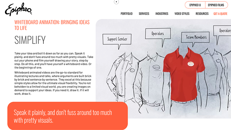 | Epipheo | Whiteboard animation that focuses on creating videos that provide epiphanies, helping audiences understand complex ideas. | B2B, B2C, non-profit |